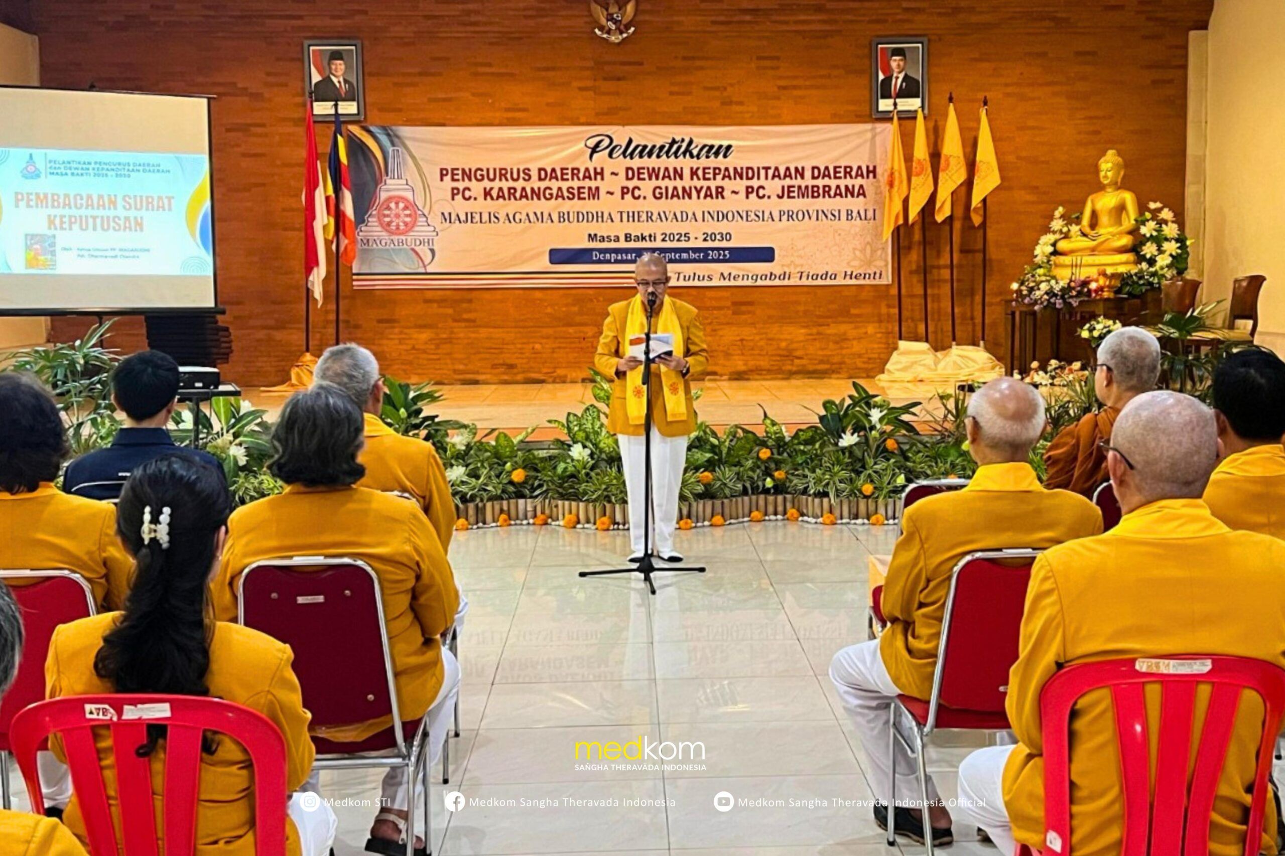 Denpasar, 20 September 2025, dengan penuh khidmat, Y.M. Bhikkhu Sucirano Mahāthera bersama Y.M. Bhikkhu Kusalasarano, selaku Upa-Padesanāyaka Provinsi Bali, menghadiri dan memberikan arahan dalam pelantikan Pengurus Daerah Majelis Agama Buddha Theravāda Indonesia (Magabudhi) Provinsi Bali masa bakti 2025–2030 yang digelar di Vihāra Buddha Sakyamuni, Denpasar.